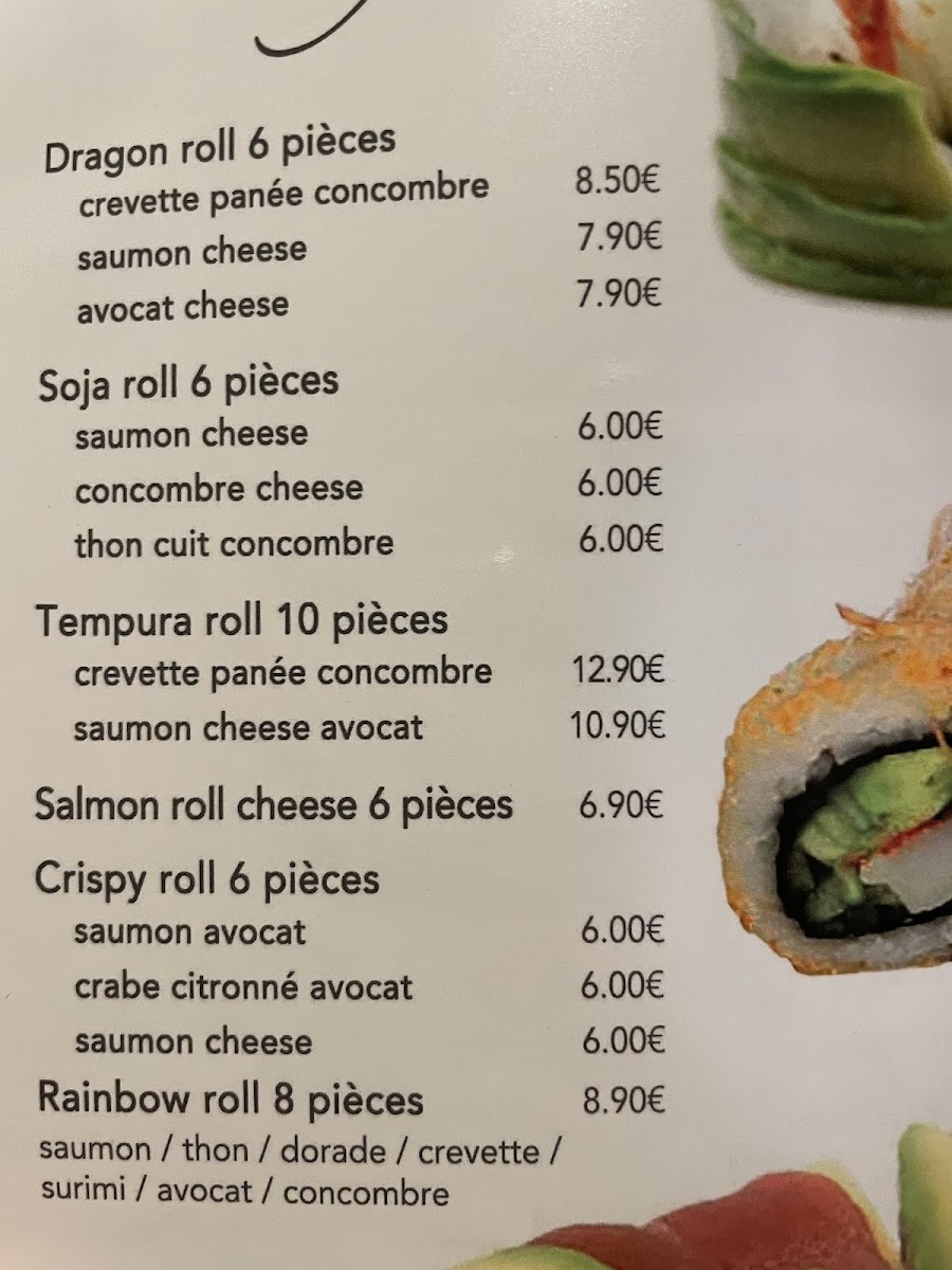 (6 california roll saumon cheese concombre / 6 salmon roll / 6 maki roll cheese avocat)